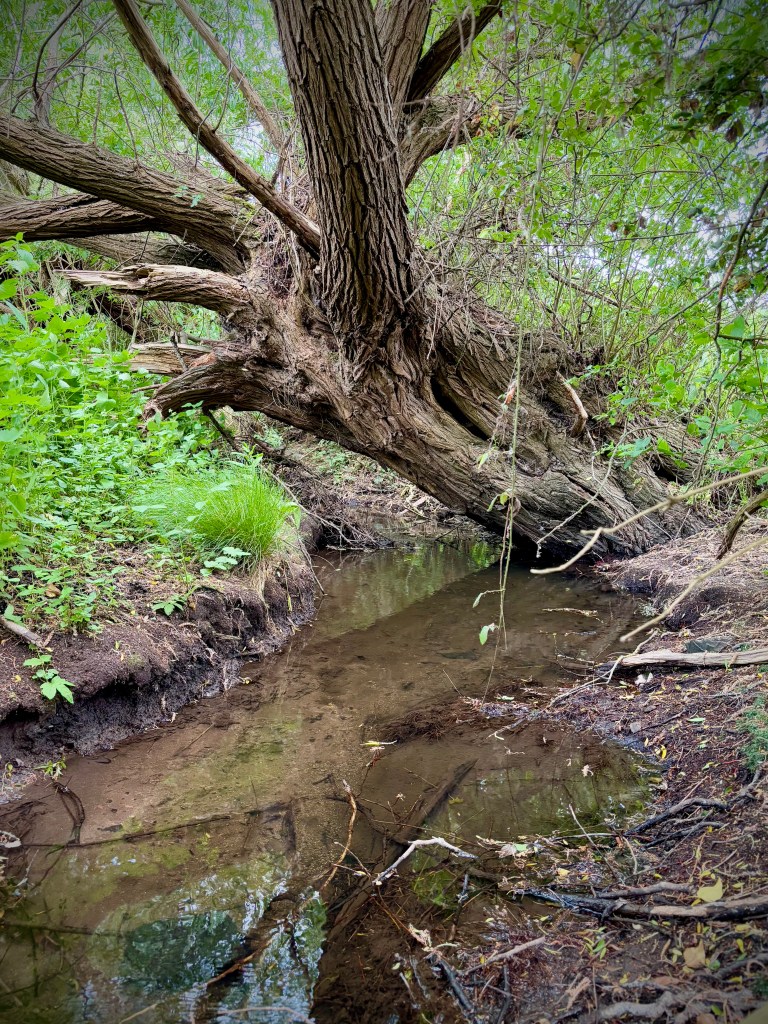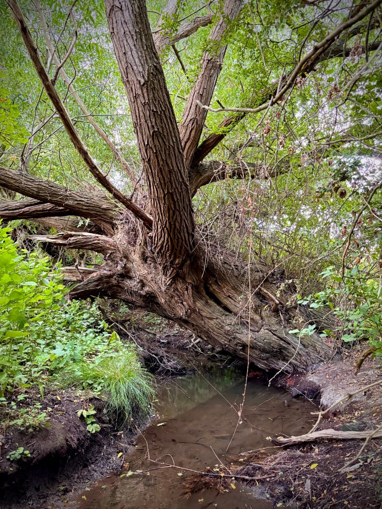 The older I get, the more I appreciate trees and their significance. Traditionally, the trees that line the brook along the my new woodland would be pollarded or harvested periodically for firewood. Now there is no grazing livestock in this section and no seasonal hay making and so, less need to keep things “tidy”.