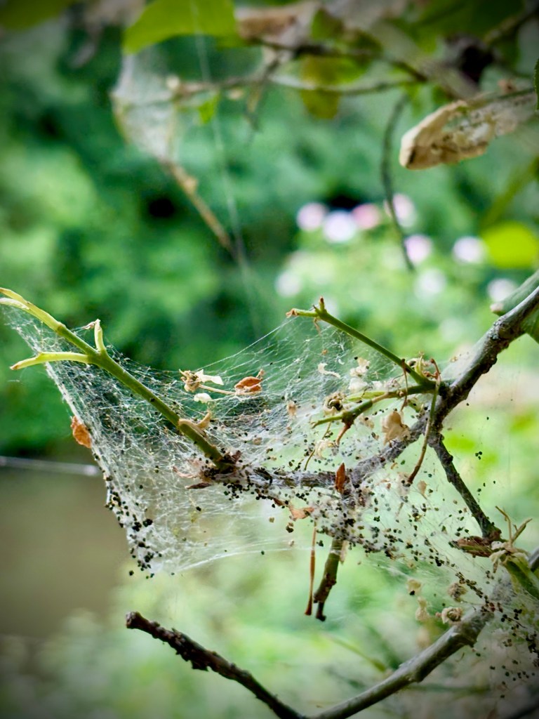White campion – often used to be used as a substitute for soap and also as a remedy for various ailments. Good for pollinators.Web of Yponomeuta, or ermine moth.