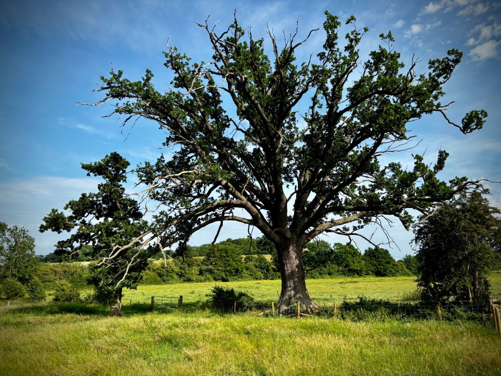 As a child, I attempted to scale its shear cliffs of bark. I swung from a rope swing suspended from it’s lower boughs. I camped beneath it on numerous occasions, and have done so recently whilst creating a wetland area. As a 10-year-old I had an old MOT failure, a French Simca 1000 (later replaced by a much better Triumph Dolomite), which I raced around the fields after harvest time, zooming through the gateway beneath this mighty oak, using it as a time marker. In my late teens, I engaged in romantic trysts beneath the shade of its vast canopy with girlfriends de jour, once being compromised whilst in such activity, completely “au naturel”, by a neighbouring farmer.