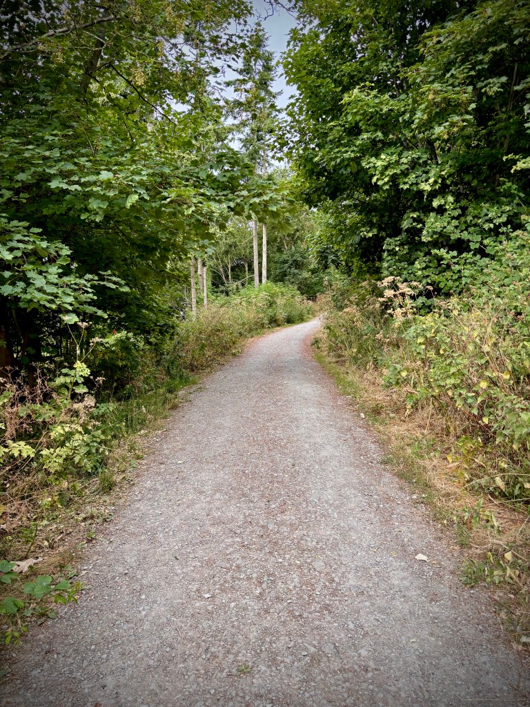 As I rise up the steep path – brambles and fern, elderberry and fireweed either side, tall trees beyond: oak, ash, fir and yew to name but a few – there’s a feeling of stepping back in time.