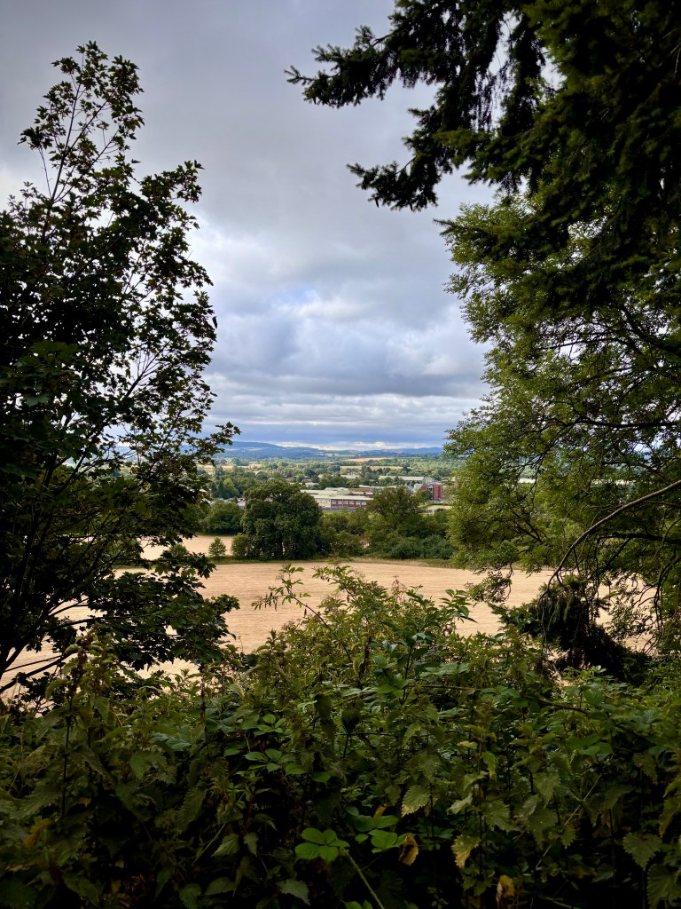 Glancing through various gaps in the trees, I see Stirling Lines – garrison of that famous regiment – the Black Mountains of Wales, Lord Hereford’s Knob and Hay Bluff are visible in the distance; a reminder of how close we are to Wales.
