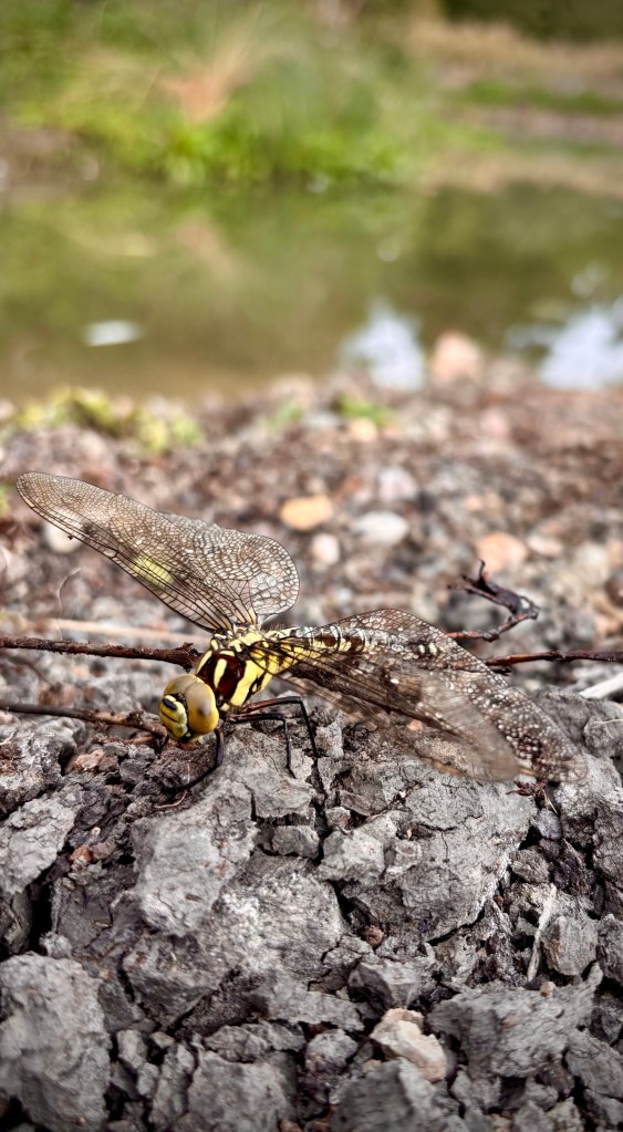 The ponds have been a pleasant success, and a gift that keeps giving. These newly created bodies of water now pulse with life; hoverflies, pond-skaters, beetles, water boatmen and a constant shimmer of wings, rapid movement and surface-dwelling larvae. In the summer, I couldn’t walk near the water without marvelling at an abundance of damselflies and dragonflies hovering over the surface and zooming around the edges, looking very much at home.